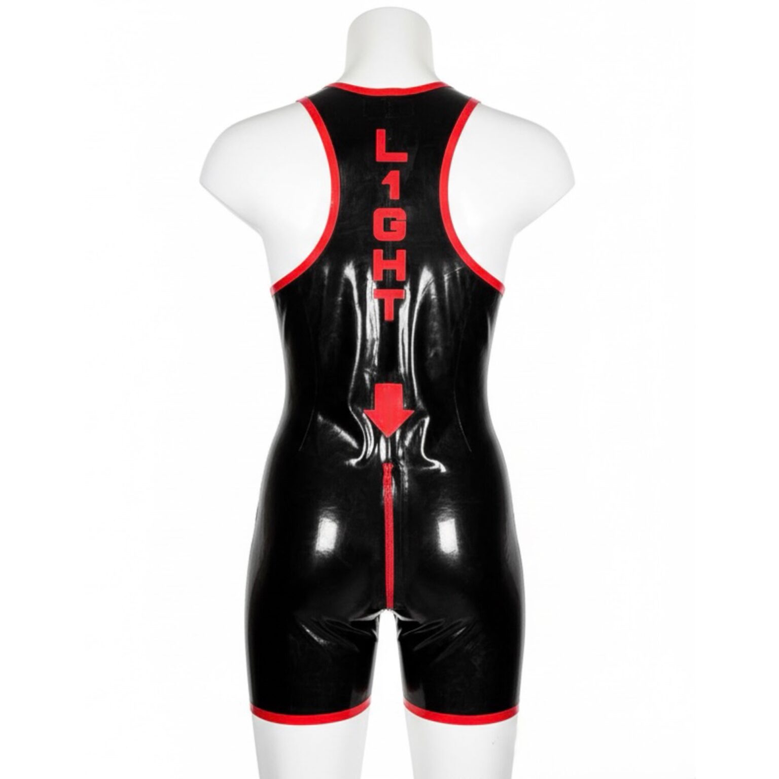 Coupe lutte moulante, zip frontal sensuel, flèche signature et inscription personnalisée dans le dos.