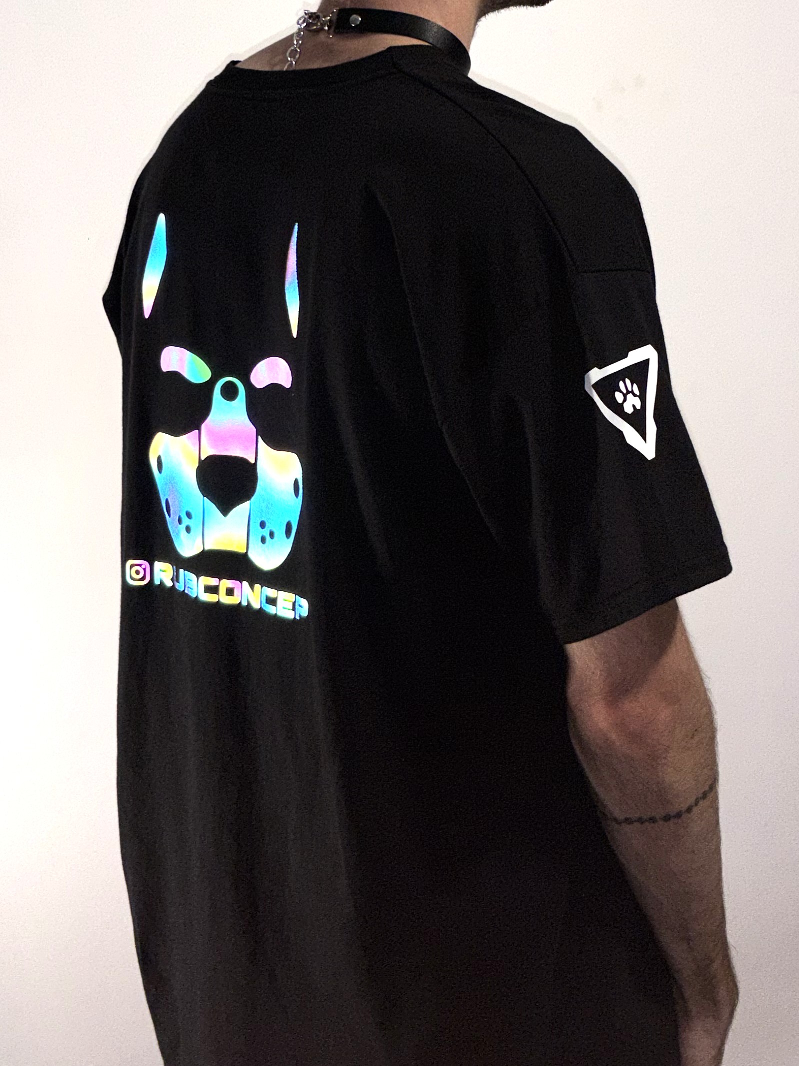 Au dos, une hood pup stylisé s’illumine à la lumière, révélant ton rôle au bon moment.